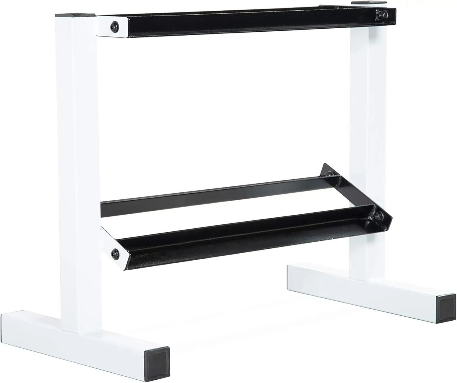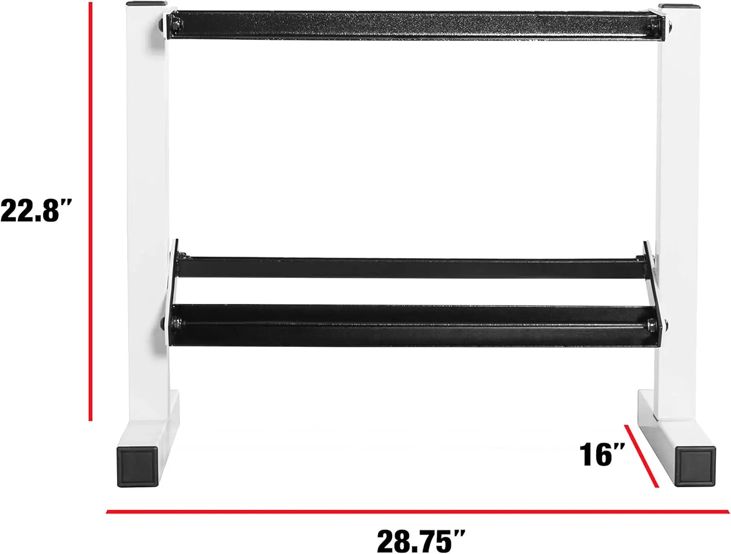 Enhance your home workout routine with this comprehensive dumbbell set, designed for durability and convenience. The package includes a pair of rubber hex dumbbells in weights of 5, 10, 15, 20, and 25 pounds, totaling 150 pounds, along with a two-tier white storage rack to keep your equipment organized. This set is shipped in multiple boxes for secure delivery. Key Features: - Space-Saving Design: The two-tier rack maximizes floor space while allowing easy access to dumbbells. Rubber inserts protect both the rack and weights from scratches during use. - Durable Construction: Made from high-quality materials, the rack features a steel frame with a durable black powder coat finish. Dumbbell heads are crafted from ASTM A48 Class 20 grey iron and connected by solid steel handles (for sizes 15-120lb) coated in extreme-durability rubber. - Versatile Workout Options: Ideal for targeting specific muscle groups or performing full-body exercises. Perfect for isolation moves, functional training, HIIT workouts, and strength routines to support various fitness goals. - Enhanced Grip and Safety: Hex-shaped heads prevent rolling on surfaces, while medium-depth knurling on handles ensures essential grip and security during intense sessions. The rubber coating adds durability and effectiveness to each piece. This set is perfect for home gyms or personal fitness spaces, offering reliable performance and easy storage. Upgrade your equipment today to achieve better workout results!