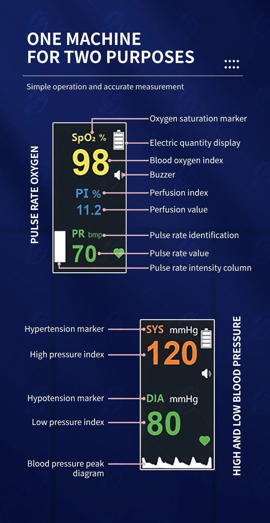 2 In 1 Dual Function Blood Oxygen and Blood Pressure Monitor, Intelligent Bluetooth Finger Pulse Oximeter+Blood Pressure Monitor