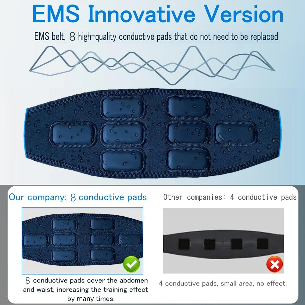 【NEWEST IMPROVED VERSION】Our abdominal toner is newest and improved version. It offers greater coverage than the average abs training belts you can find on the market today. The 8-piece large-area silicone pad effect is 50% higher than that of ordinary models.It covers more areas of the abdominal region, stimulates more muscles and leads to a better and faster result!