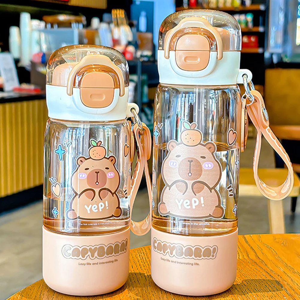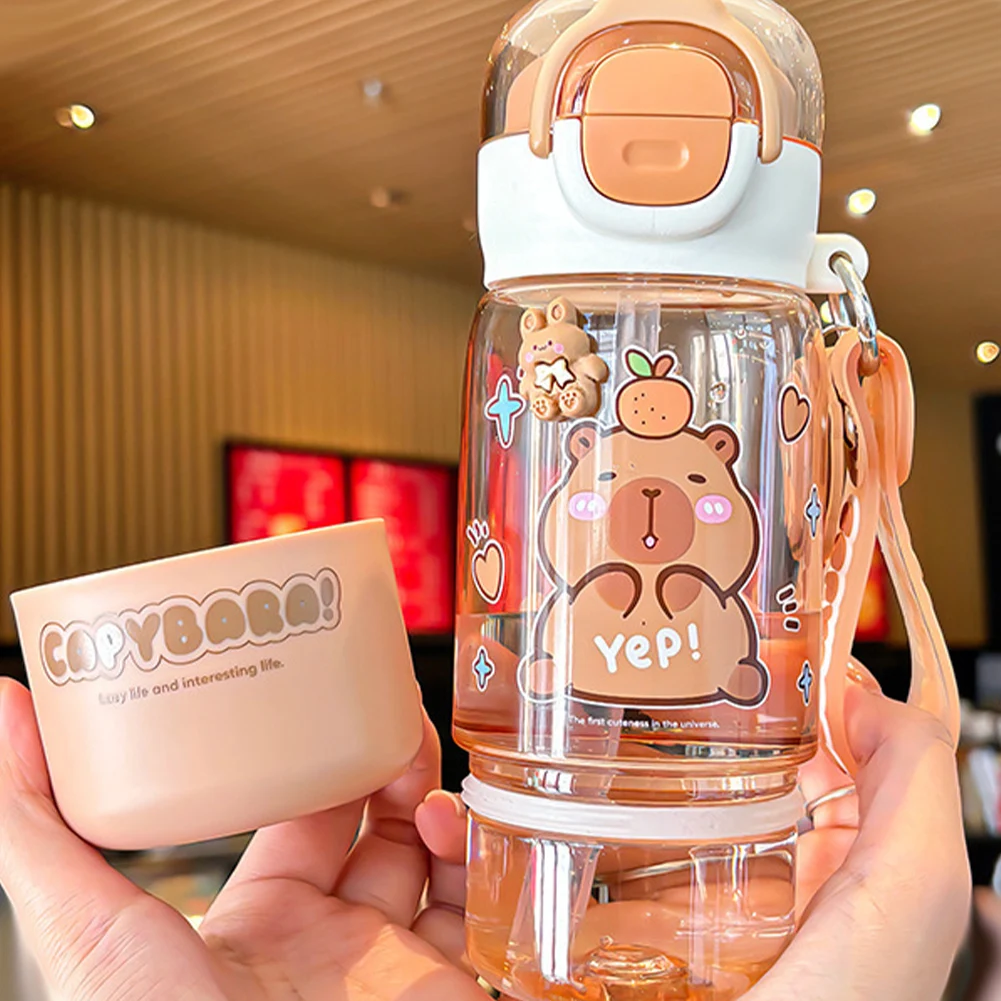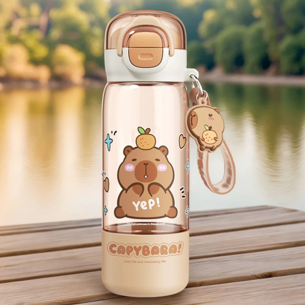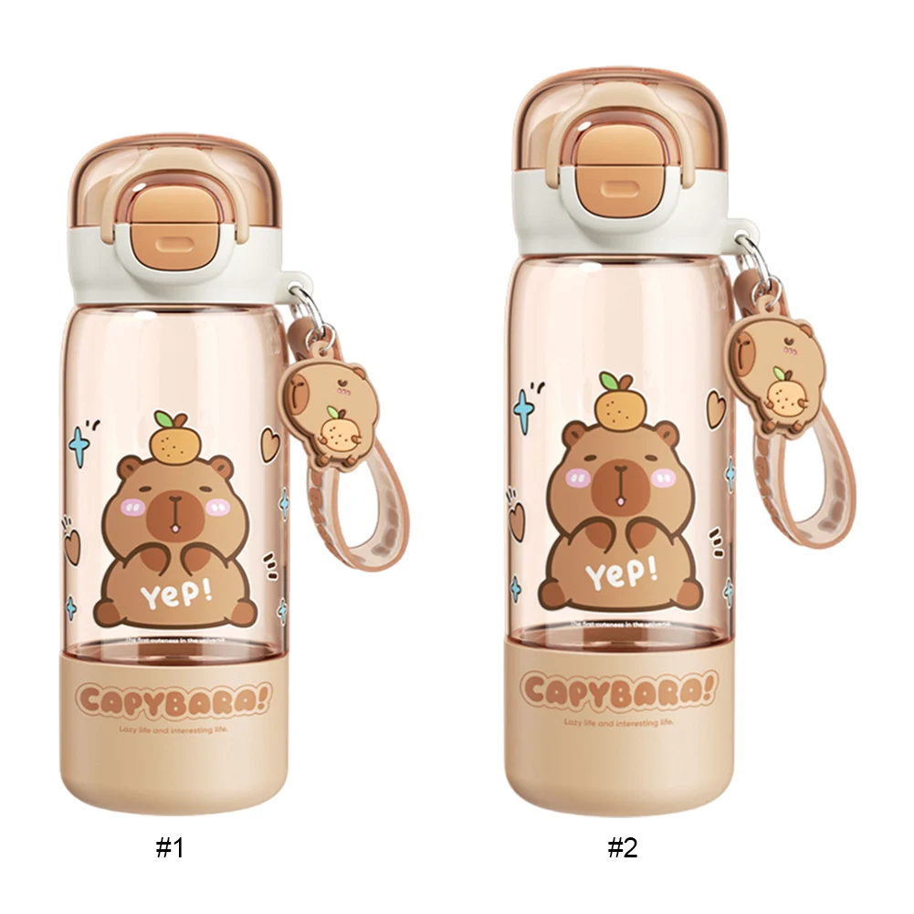 Cartoon Capybara Large Capacity Water Cup with Straw & Portable Strap Leakproof Drinks Bottle Portable Drinking Bottles for Kids Teen Girls Travel School Sports Features: 1.Charming Water Bottle Design: Featuring a fun and captivating cartoon capybara print, this water bottle is for animal lovers, children, or students seeking unique drinkware. 2.Dual Opening Feature: Includes a wide mouth opening for easy cleaning and filling, and a straw spout for convenient sipping with the large capacity water cup. 3.Spring-Loaded Flip Cap: Equipped with a secure spring cap that opens easily with one hand, helping prevent spills and allowing quick access to your leakproof drinks bottle while on the go. 4.Lightweight & Portable: Compact size comes with a handy strap, ideal for backpacks, lunch bags, or outdoor activities like hiking or biking with portable drinking bottles. 5.Sturdy & Safe Materials: Made from PC plastic, it is safe, reusable, and sturdy enough for daily use at school, work, or outdoors, ensuring your plastic kapibara cup lasts. Specification: Origin: Mainland China Material: PC Capacity: 510ml Item number: CH-2529 Dimensions: Height 19.4cm/22.2cm Width 7.1cm Diameter 5cm Net weight: Approximately 241g Note: Due to different monitor settings and lighting conditions, the actual color of the item may vary slightly from the pictures. Thanks for your understanding! Please allow a 1-2 cm difference in measurements due to manual measuring.
