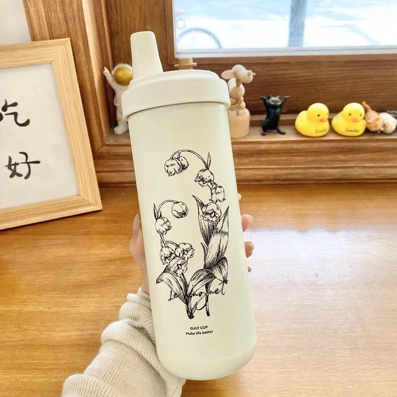 6. Designed with straw cover cap, this cute insulated water bottle is dust-proof