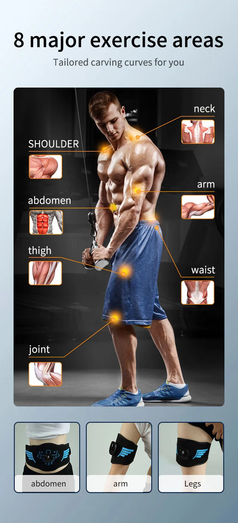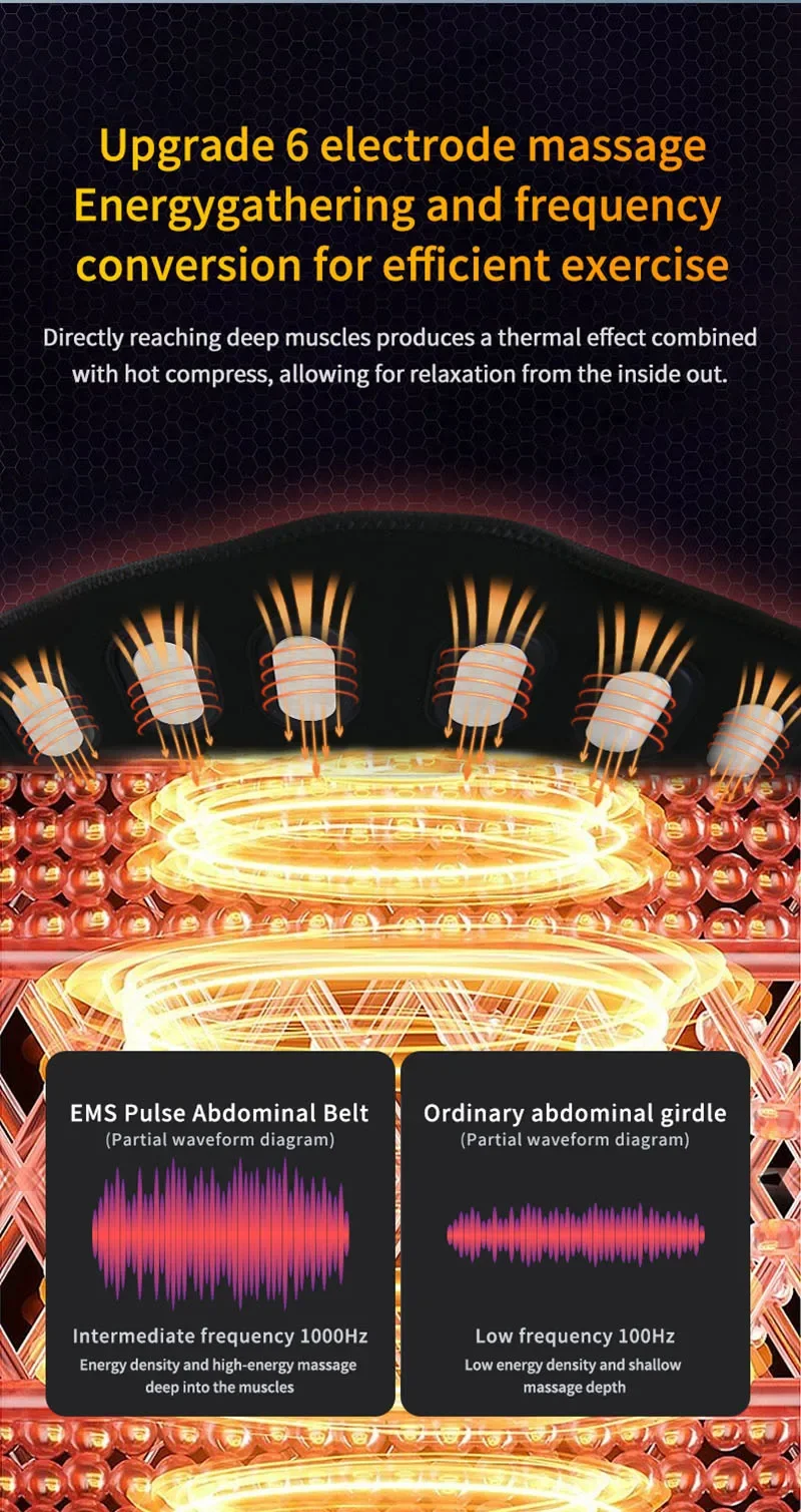 EMS Abdominal Toning Belt Muscle Stimulator Abs Trainer Electric USB Recharge Body Waist Massager Weight Loss Fitness Equiment Unisex