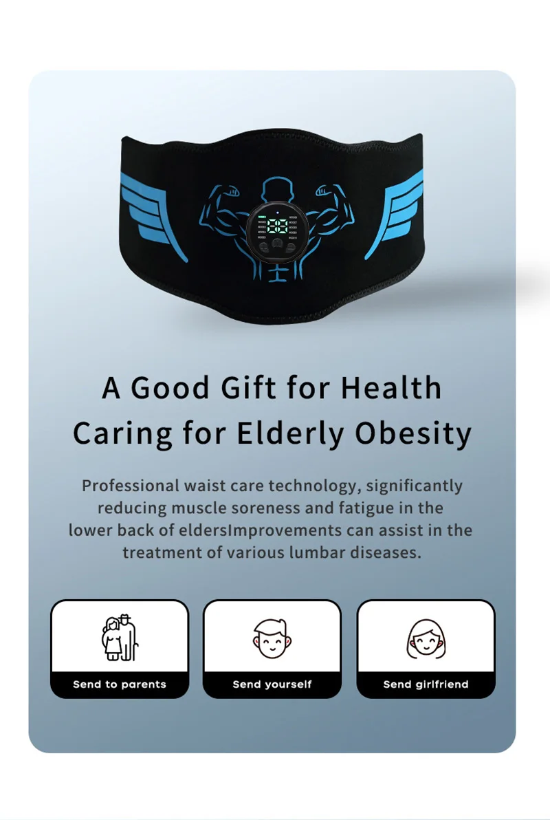 EMS Abdominal Toning Belt Muscle Toner Abs Trainer Electric USB Recharge Body Waist Massager Weight Loss Fitness Equipment Unisex