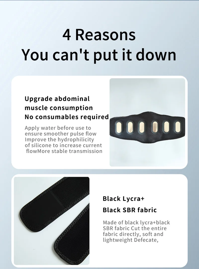 4. Efficiency training: Using the abdominal muscle belt for 20 minutes is equivalent to jogging 1500m, abdominal muscle training 30 minutes, and swimming 30 minutes.
