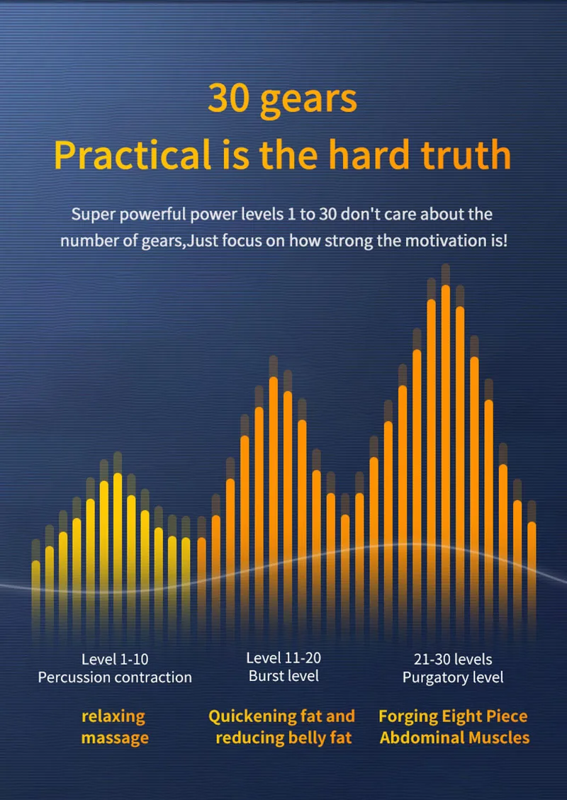 2. Easy to operate: The abdominal muscle belt has 10 types of modes and 30levels of strength. The EMS abdominal muscle belt is equipped with an LCD screen that displays the mode and strength. Intensity and mode can be selected by pressing the screen buttons. You can enjoy training clearly.