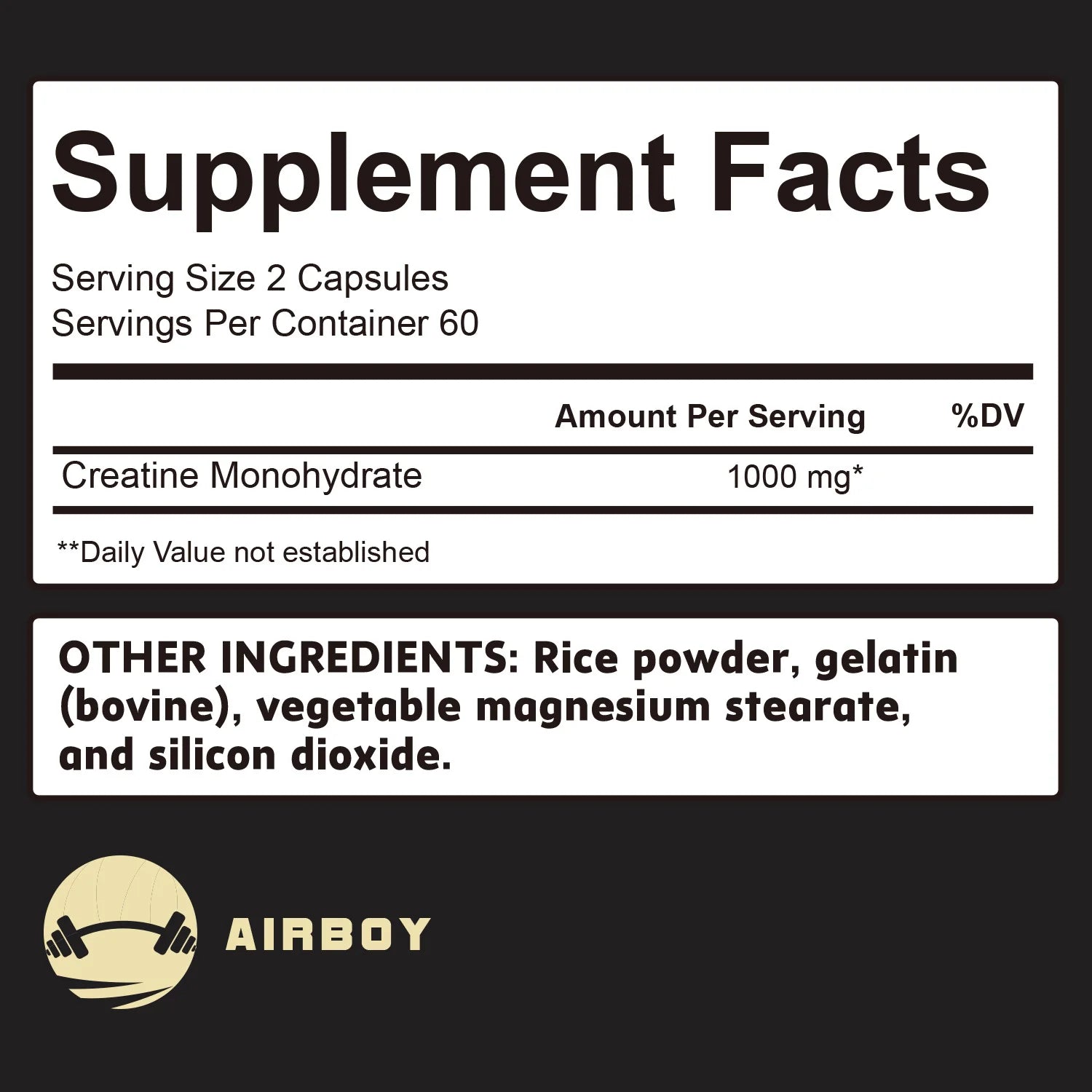 Maximize your Potential: Enhance your active lifestyle with our Creatine Monohydrate capsules, designed to support your strength and performance goals. Each serving delivers a substantial 1000mg dose, catering to both fitness enthusiasts looking to push their limits.