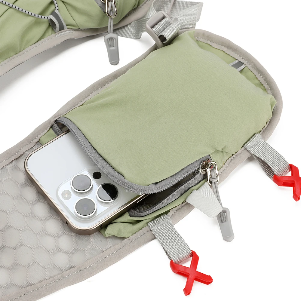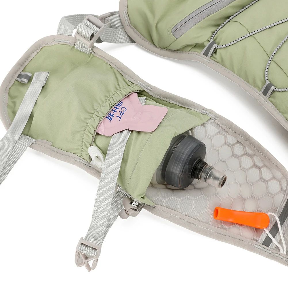 | Hydration Backpack Large Capacity Ultralight Storage Knapsack Breathable Mountaineering Vest Bag Camping Sports Backpack Features: 1.Waterproof Structure: This hydration backpack is made from Oxford fabric, providing reliable rain and splash protection to keep your items dry during outdoor activities. 2.Adaptive Flexibility: Easily switch between single shoulder, dual strap, or handheld modes to ensure the cycling backpack meets dynamic needs. Equipped with a smartphone zipper pocket (fits phones up to 6.1 inches) and storage slots for convenience and mobility. Reflective strips enhance safety while running at night. 3.Lightweight Comfort Advantage: Specifically designed for outdoor adventures, this ultralight storage knapsack eliminates back strain during long trail running sessions while maintaining excellent movement comfort. 4.Breathable Comfort: The mountaineering vest bag features a breathable mesh design to enhance air circulation, keeping your back dry and comfortable while minimizing stuffiness during workouts. 5.Versatile Use: Crafted for sports enthusiasts, the hiking nylon pouch supports various activities like hiking and traveling, offering practical storage options for different needs during outdoor adventures or daily commutes. Specification: Origin: Mainland China Material: Nylon Product size:200.00x40.00x400.00mm/7.87x1.57x15.75inch