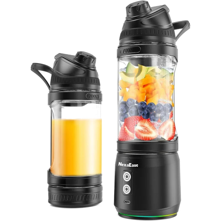 PORTABLE AND POWERFUL: The NexaEase portable blender features a 240W motor and 6 stainless steel blades spinning at 18,000 RPM. It combines a portable design with the power of a plug-in juicer for a smooth blending experience.