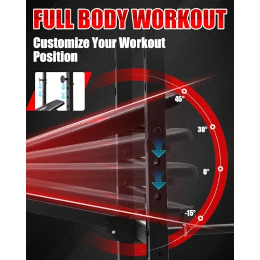 Standard Weight Bench Set with Squat Rack 600LBS Adjustable Bench Press Set with Leg Extension and Leg Curl Foldable Flat Incli