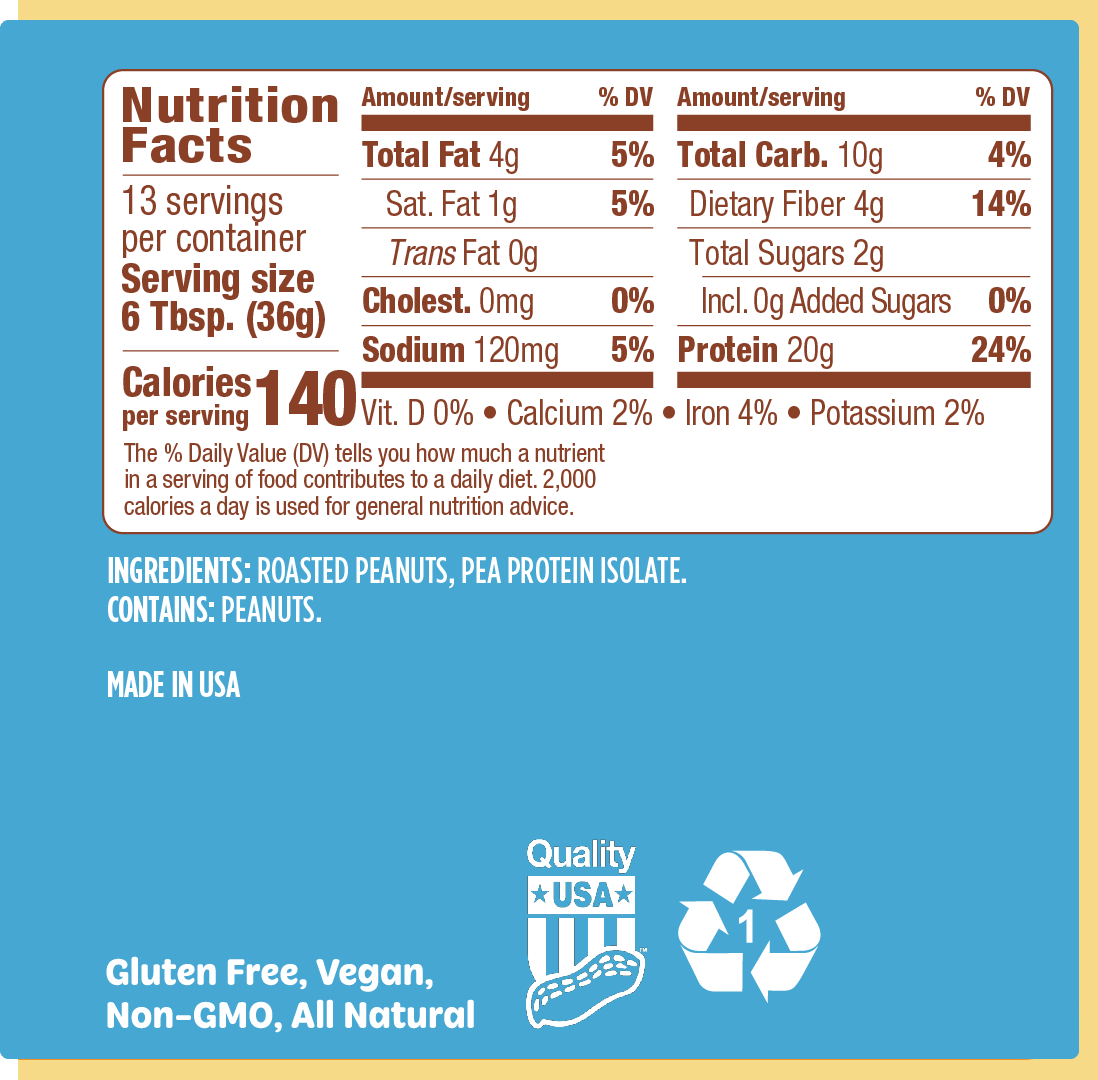 Get clean, plant-based protein with great peanut flavor. Tru-Nut Peanut Protein Powder is made from just roasted peanuts and pea protein isolate—nothing added, nothing artificial. No sugar, no salt, no fillers. Use it to boost protein and peanut flavor in smoothies, shakes, oatmeal, yogurt, baking, and more. Easy to use, clean ingredients, and perfect for healthy lifestyles.
